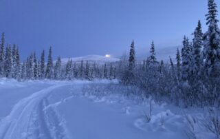 We follow the dog teams along the trail with snowmobiles on either short day-trips to access safety cabins located every 50 miles or we tackle the entire distance to the finish line at Nome for a total of ~600 miles!