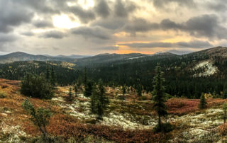 Upland Areas ranging from 500 to 2,000 feet in elevation are dominated by rounded, lichen & blueberry covered hills that transition upwards to rugged, barren ridges that obtain heights of up to 4,000 feet.