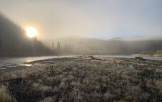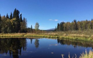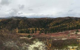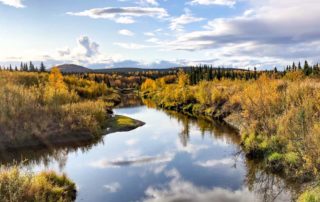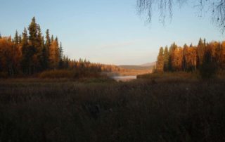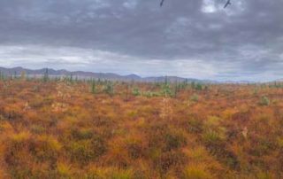 Lowland areas along the Innoko River are covered by wide expanses of tundra and black spruce that give way to dense boreal spruce & birch forests localized along shallow meandering river systems.